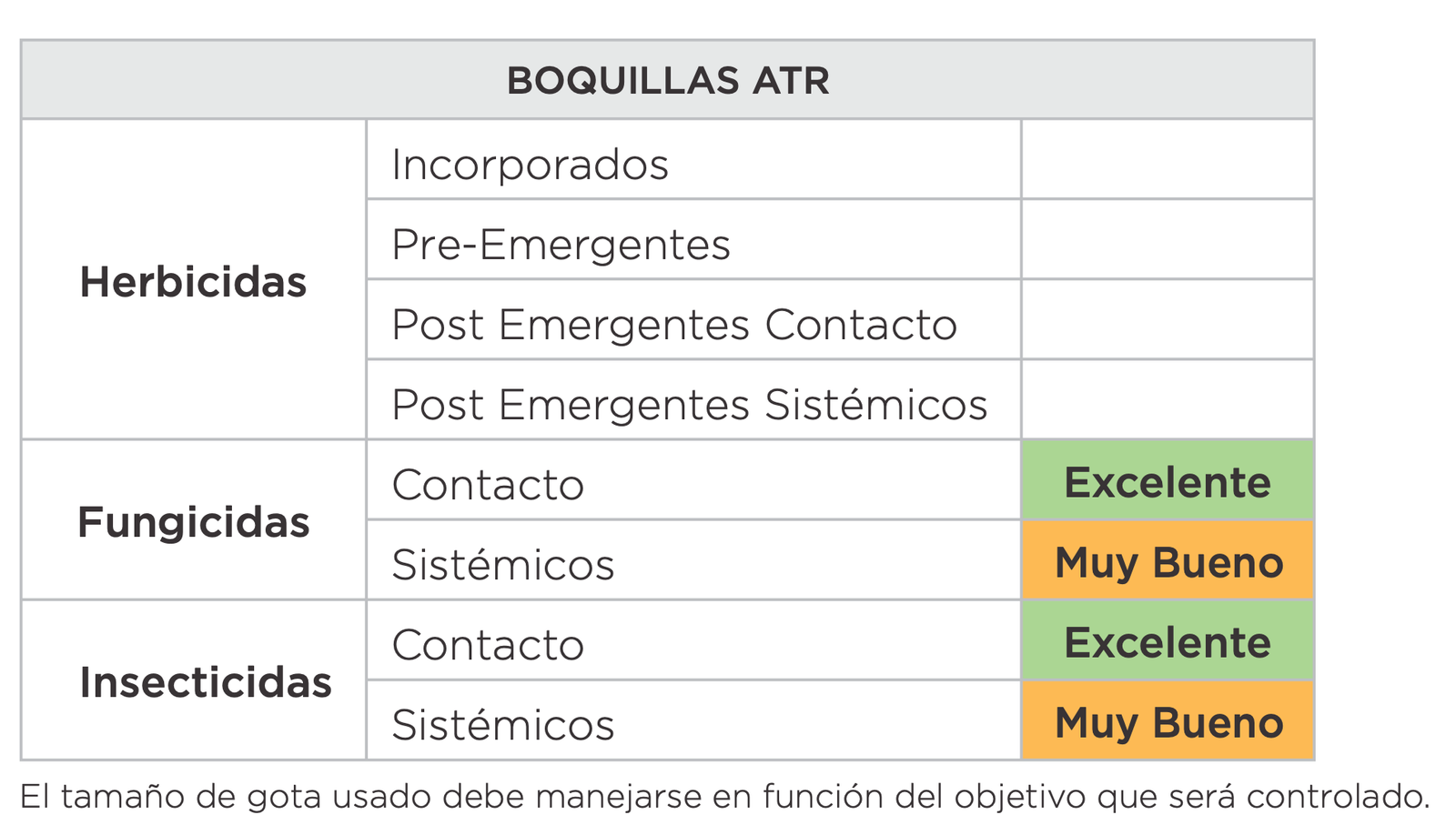 Modelos disponibles: ATR 0,5 hasta ATR 7,0, cada uno con diferentes niveles de caudal y tamaño de gota.